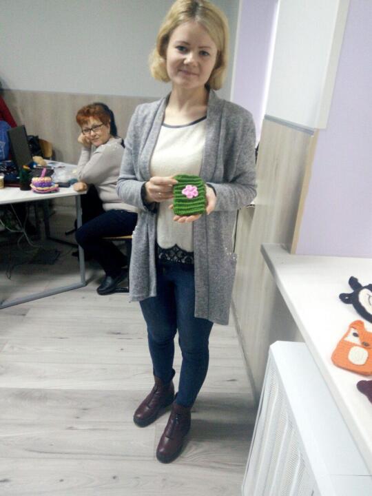 У цілому зміст заняття був спрямований на роботу зі схемами в’язання по колу, спіралі, квадратного мотиву, сніжинки. Також увага була приділена способам рівномірного збільшення та зменшення кількості петель усередині вив’язуваного полотна. Результатом роботи стали вироби – брелок «сова», сніжинка, піставка під гаряче.