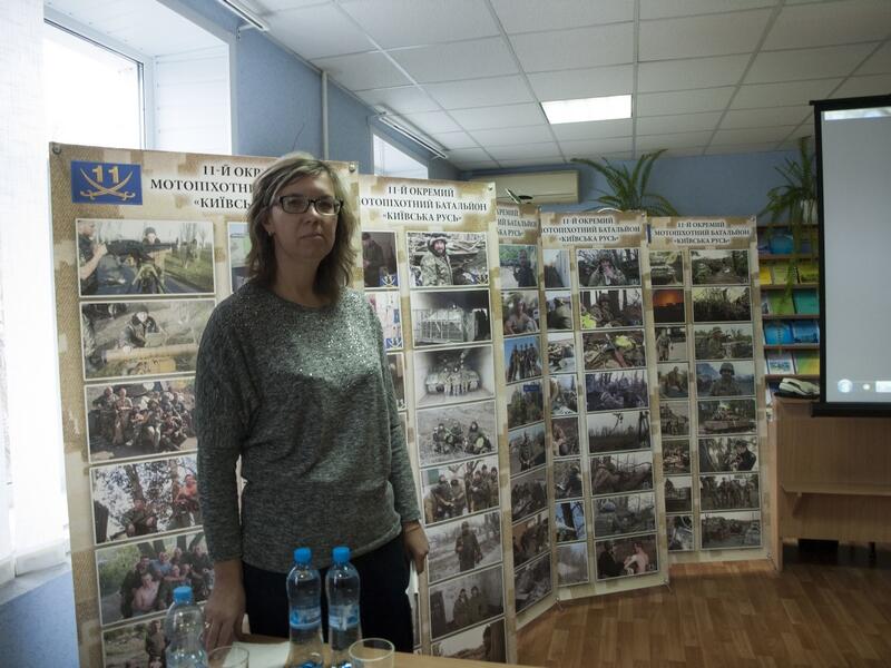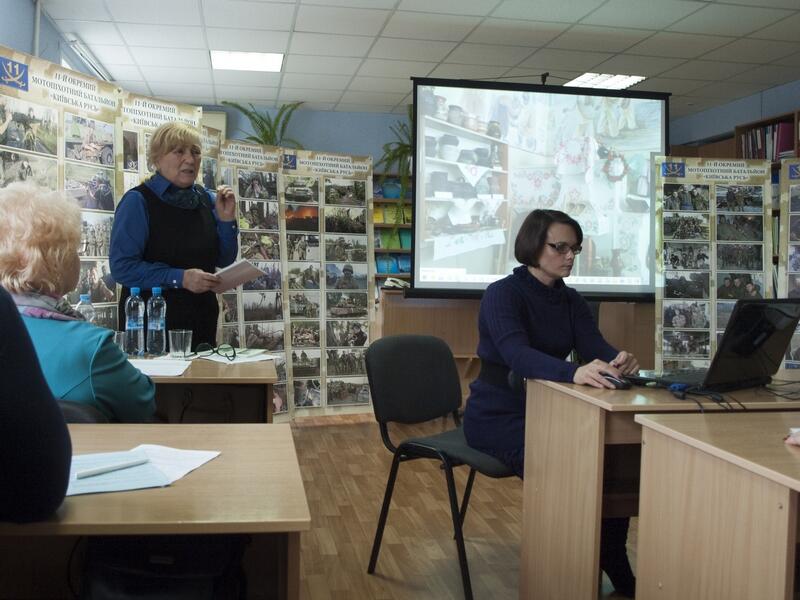 З особливим інтересом учасники круглого столу познайомилися з тематичною виставкою інтерактивного музею-галереї воїнів АТО «Герої серед нас», над створенням якої працював Макаревич Олександр Платонович, кандидат психологічних наук, доцент, Національного університету оборони України, капітан першого рангу, учасник АТО.