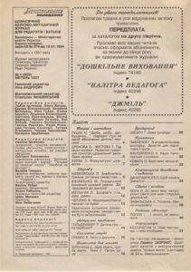 • У 1964 році у журнал «Дошкільне виховання» додається спеціальний розділ, що вміщував консультативні матеріали для батьків, оскільки в цей час значну увагу приділяли педагогічному просвітництву в сім’ї. В середині 1960-х років почали з’являтися «програми педагогічного мінімуму для батьків»; серед рекомендованої літератури до програми був внесений журнал «Дошкільне виховання».