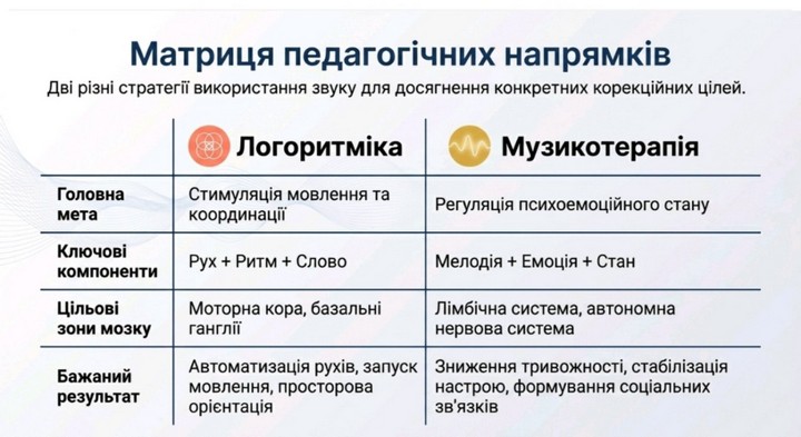 Як музикотерапія, логоритміка впливають на емоційно-психологічну підтримку ментального здоров’я і чому вони є універсальним інструментом корекції мовленнєвих порушень та психомоторного розвитку дітей з особливими освітніми потребами?