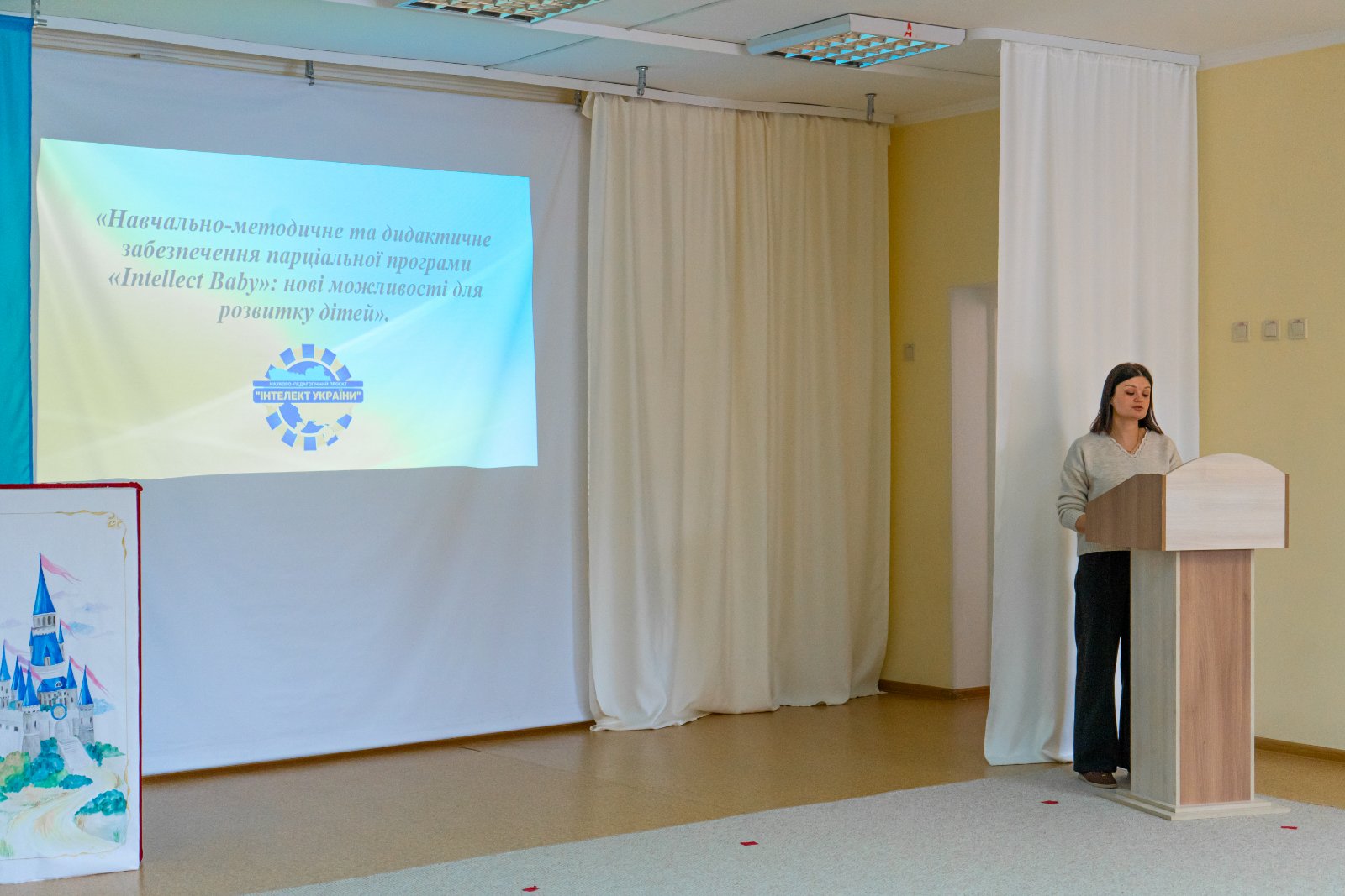 Юлія Чиж, вихователь-методист дошкільного підрозділу, представила навчально-методичне та дидактичне забезпечення парціальної програми «Intellekt Baby»;