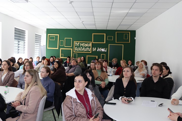 - Альона Чебан, методист відділу загальної середньої освіти інституту, розкрила тонкощі формування хорового багатоголосся та використання музики як засобу самовираження.