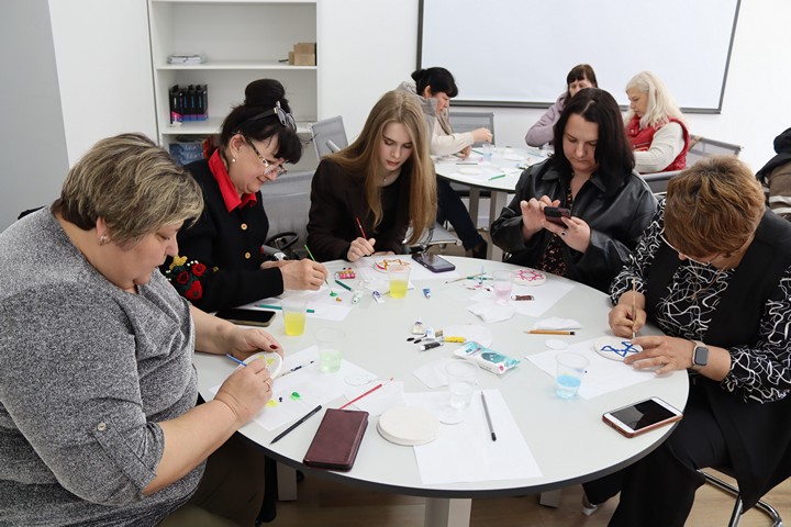- Юлія Марценюк, учителька образотворчого мистецтва Бучанського ліцею №4, провела арт-терапевтичний інтенсив «Східні мотиви» (розпис гіпсового сувеніра).