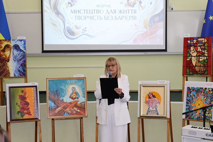 Особливу естетичну атмосферу форуму та візуальне натхнення подарувала авторська виставка художніх робіт Оксани Славінської. Представлені полотна вразили колег глибокою філософією, яскравістю барв та емоційною щирістю, ставши живим свідченням того, як мистецтво допомагає віднаходити внутрішні ресурси та гармонію.