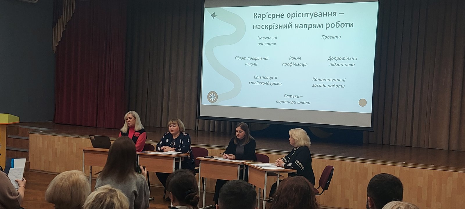 Ірина Тригуб, директор Пристоличного ЦПРПП, кандидат педагогічних наук, презентувала інноваційну модель профорієнтаційної роботи Щасливського академічного ліцею «Служба кар’єрного радника як злам традиційного мислення й усталеного підходу до профорієнтаційної роботи в школі».