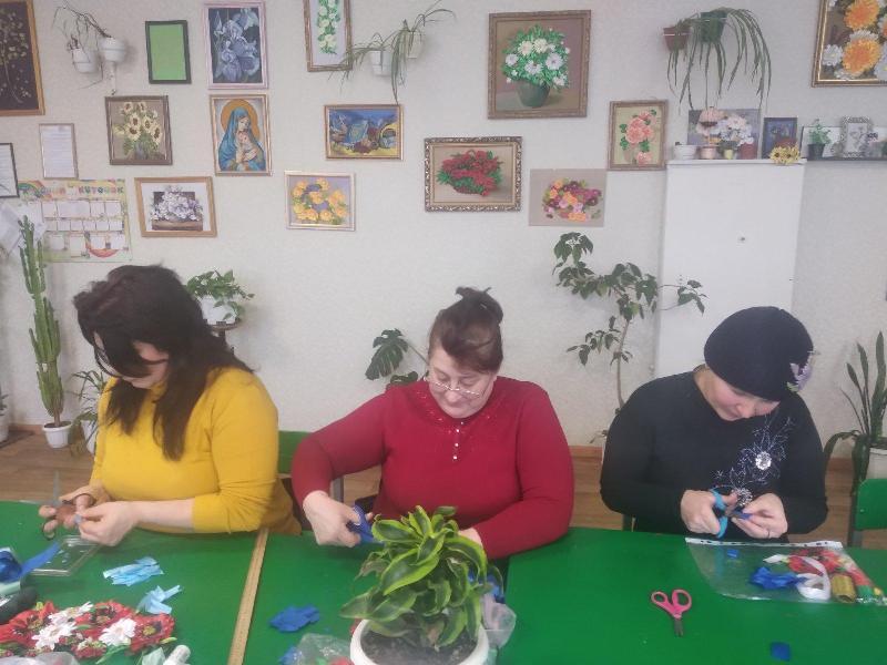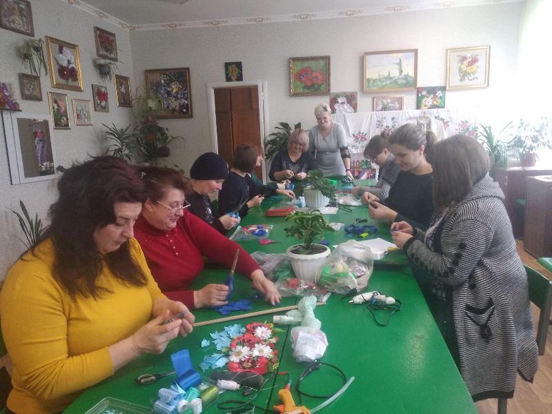 Під час практичної роботи учасники опановували прийоми компонування елементів «канзаші» в єдине ціле, виготовляли волошки та ромашки, застосовуючи різні способи.