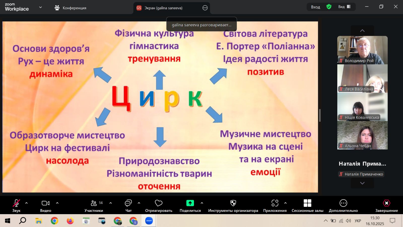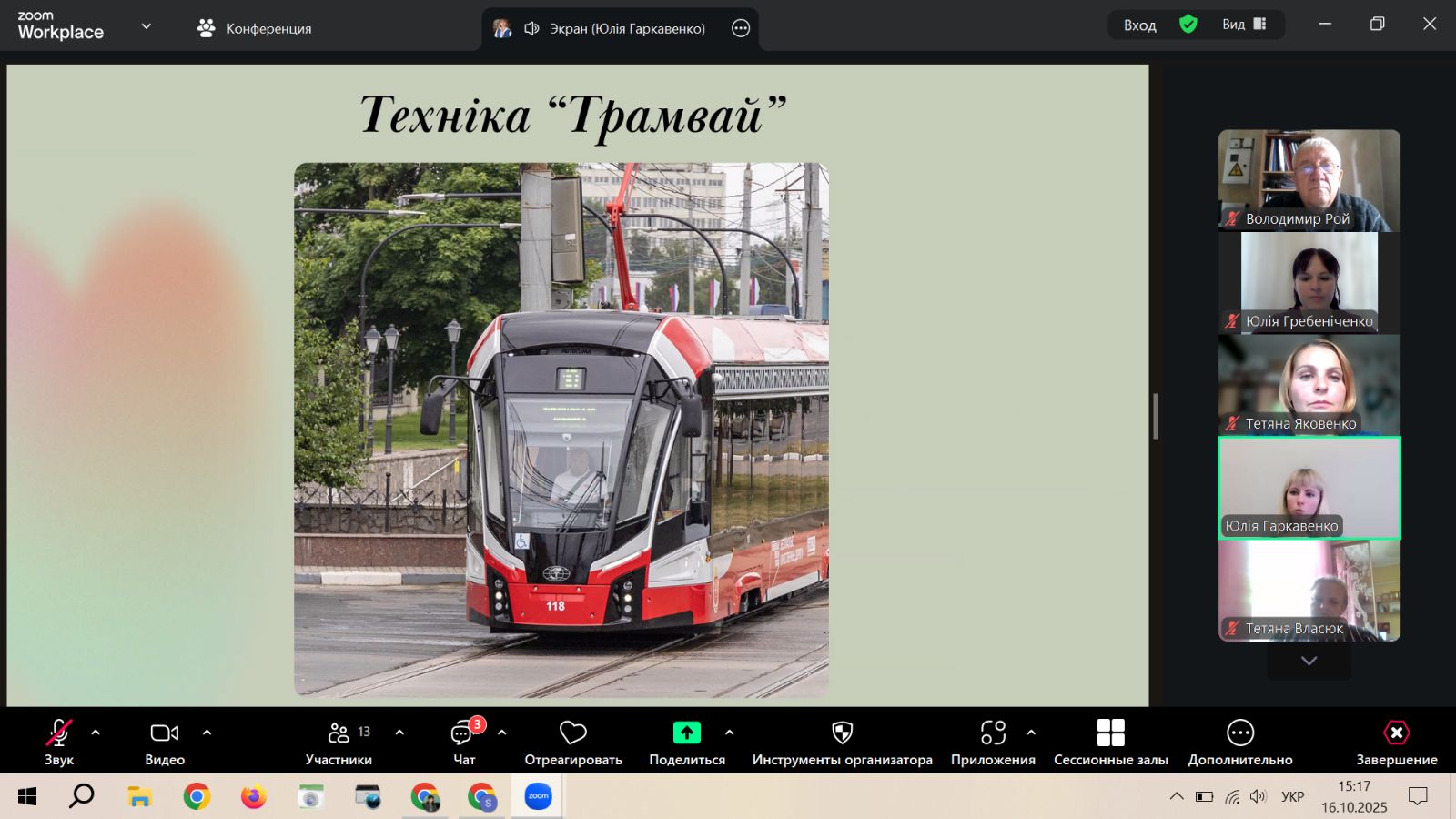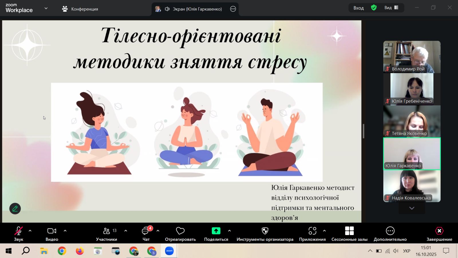 16 жовтня 2025 року відбулася зустріч STEAM-кав’ярні, що об’єднала стемівців Київщини у віртуальному просторі для професійного спілкування. Ця зустріч була присвячена ціннісно-компетентісному потенціалу STEAM-освіти і почалася з турботи про ментальне благополуччя учасників, зокрема тілесно-орієнтованих методик зняття стресу, про які розповіла Юлія Гаркавенко, методист відділу психологічної підтримки та ментального здоров’я інституту.