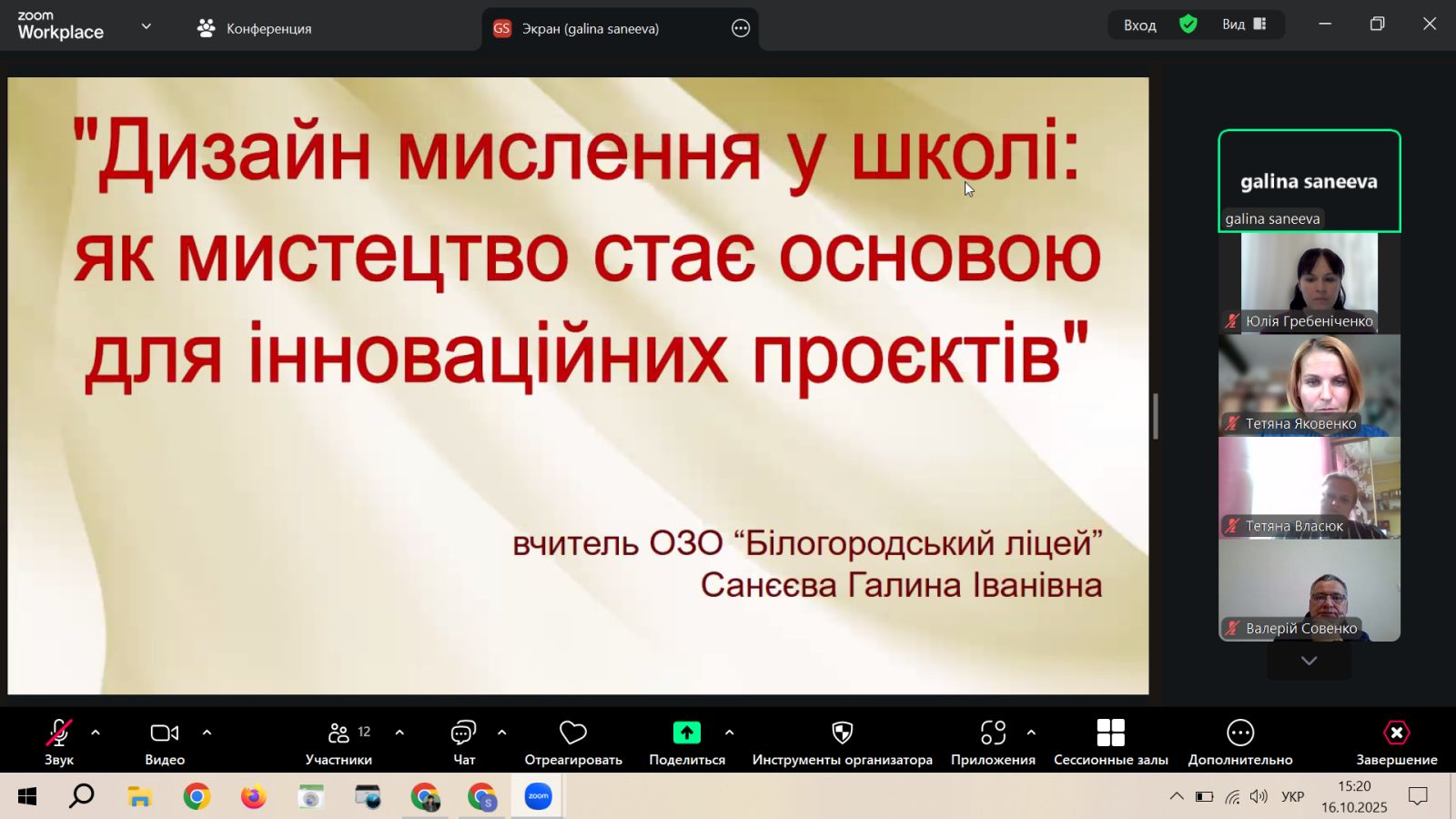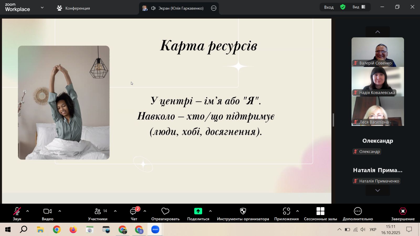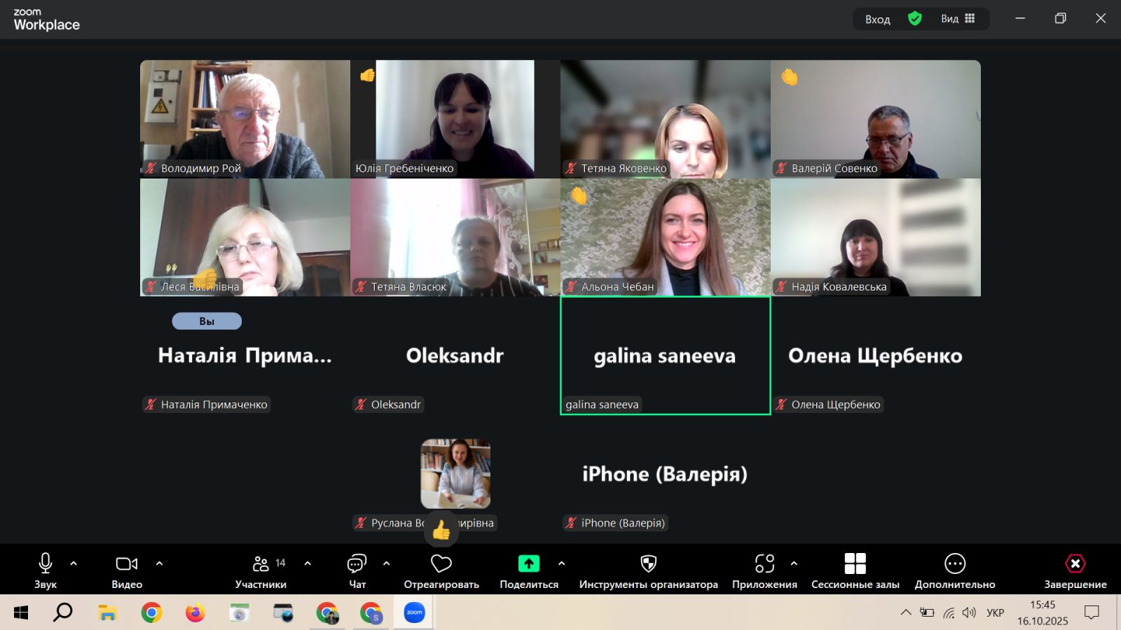 16 жовтня 2025 року відбулася зустріч STEAM-кав’ярні, що об’єднала стемівців Київщини у віртуальному просторі для професійного спілкування. Ця зустріч була присвячена ціннісно-компетентісному потенціалу STEAM-освіти і почалася з турботи про ментальне благополуччя учасників, зокрема тілесно-орієнтованих методик зняття стресу, про які розповіла Юлія Гаркавенко, методист відділу психологічної підтримки та ментального здоров’я інституту.