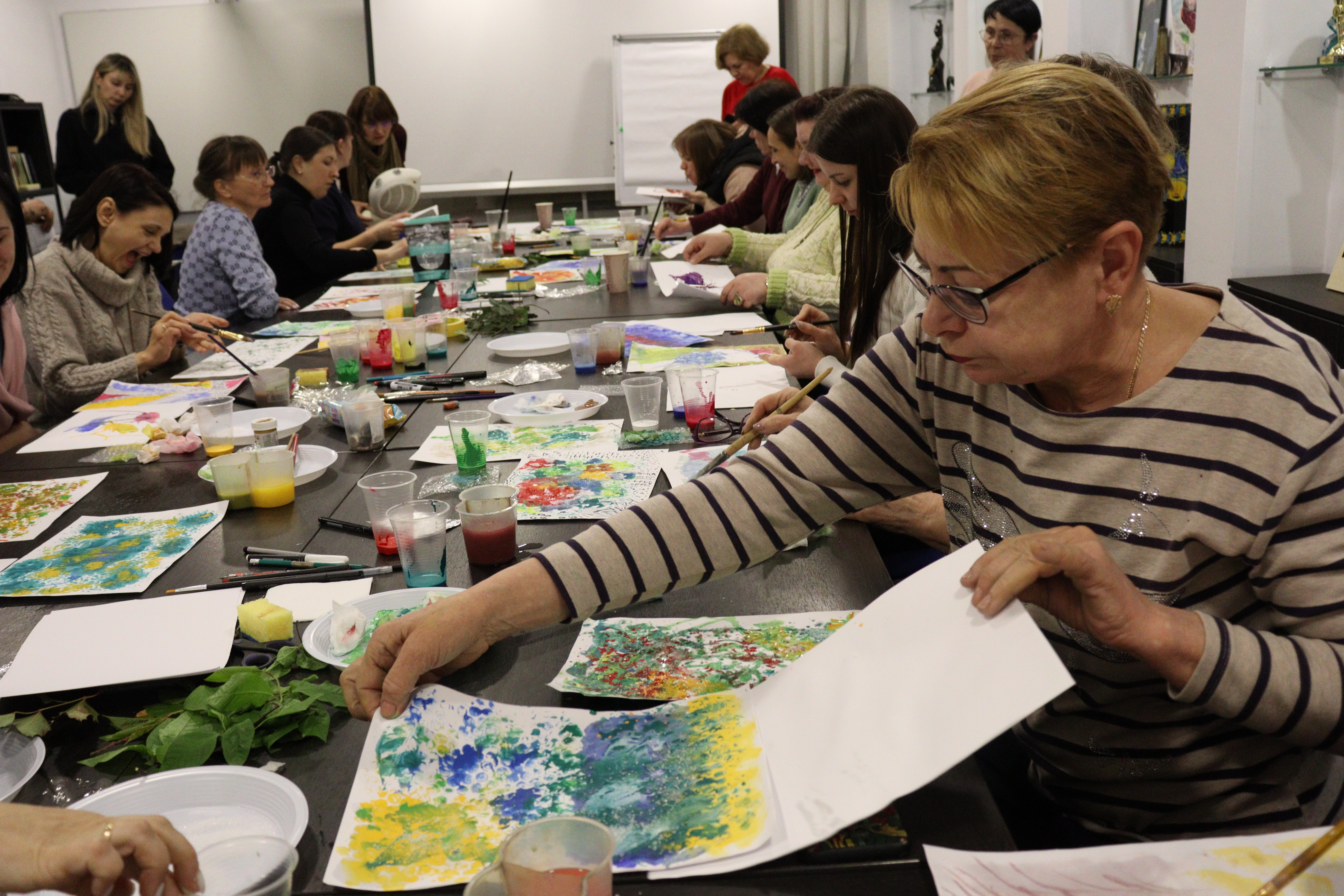 «Ми і так пережили багато. А людина мусить тягнутися до чогось світлого», – переконана Оксана Фурлет, педагог Бучанського центру позашкільної роботи імені Андрія Куцевалова. Саме під її керівництвом відбулася обласна педагогічна студія «Композиція та художній образ: робота з нерегулярною плямою з використанням природних і підручних матеріалів», що реалізується в межах Моделі національного освітнього технопарку з підвищення якості освіти в умовах воєнного та повоєнного часу освітнього хабу «Інтелектуальна платформа вчителів».