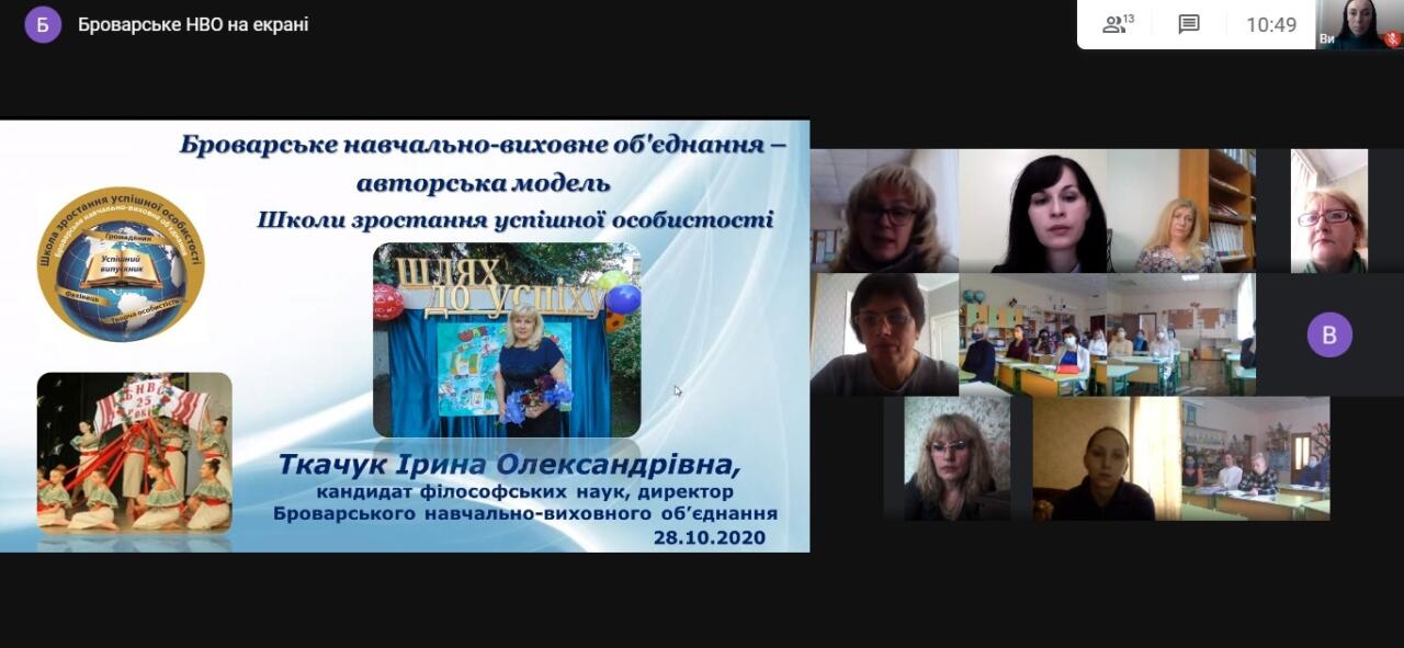 28 жовтня 2020 року на базі Броварського навчально-виховного об’єднання в онлайн-режимі відбулося перше заняття обласної педагогічної студії «Школа зростання успішної особистості» директора Броварського навчально-виховного об’єднання, кандидата філософських наук, Відмінника освіти України Ірини Олександрівни Ткачук.