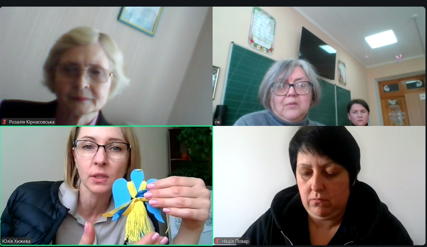 Заняття відбулося в онлайн-форматі. Учасники ознайомилися з досвідом волонтерської діяльності педагогічного та учнівського колективу ліцею «Основа». Діяльність закладу охоплює участь у волонтерських проєктах, акціях і флешмобах, співпрацю з громадськими організаціями та благодійними фондами, а також організацію виставок виробів для захисників – окопних свічок, оберегів, сувенірів тощо.