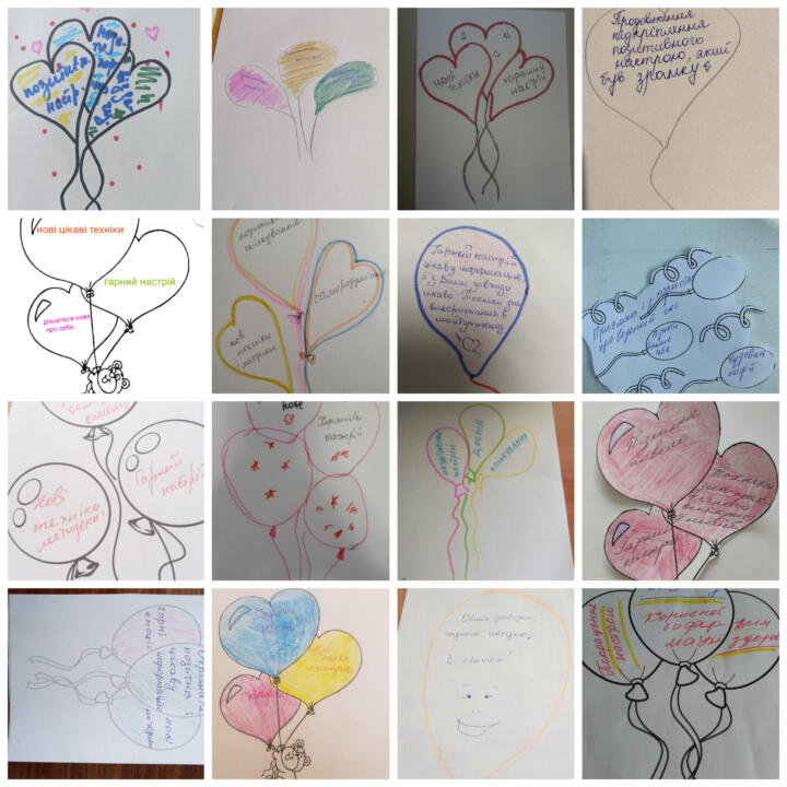 Пізнати самого себе – це означає зрозуміти свій внутрішній світ, побачити і прийняти свої не тільки позитивні якості, а й негативні. Слухачі майстер-класу на власній практиці переконалися в ефективності використання обраних технік керівниці майстер-класу та презентували створені власноруч малюнки, поділившись своїми враженнями від виконаної роботи.
